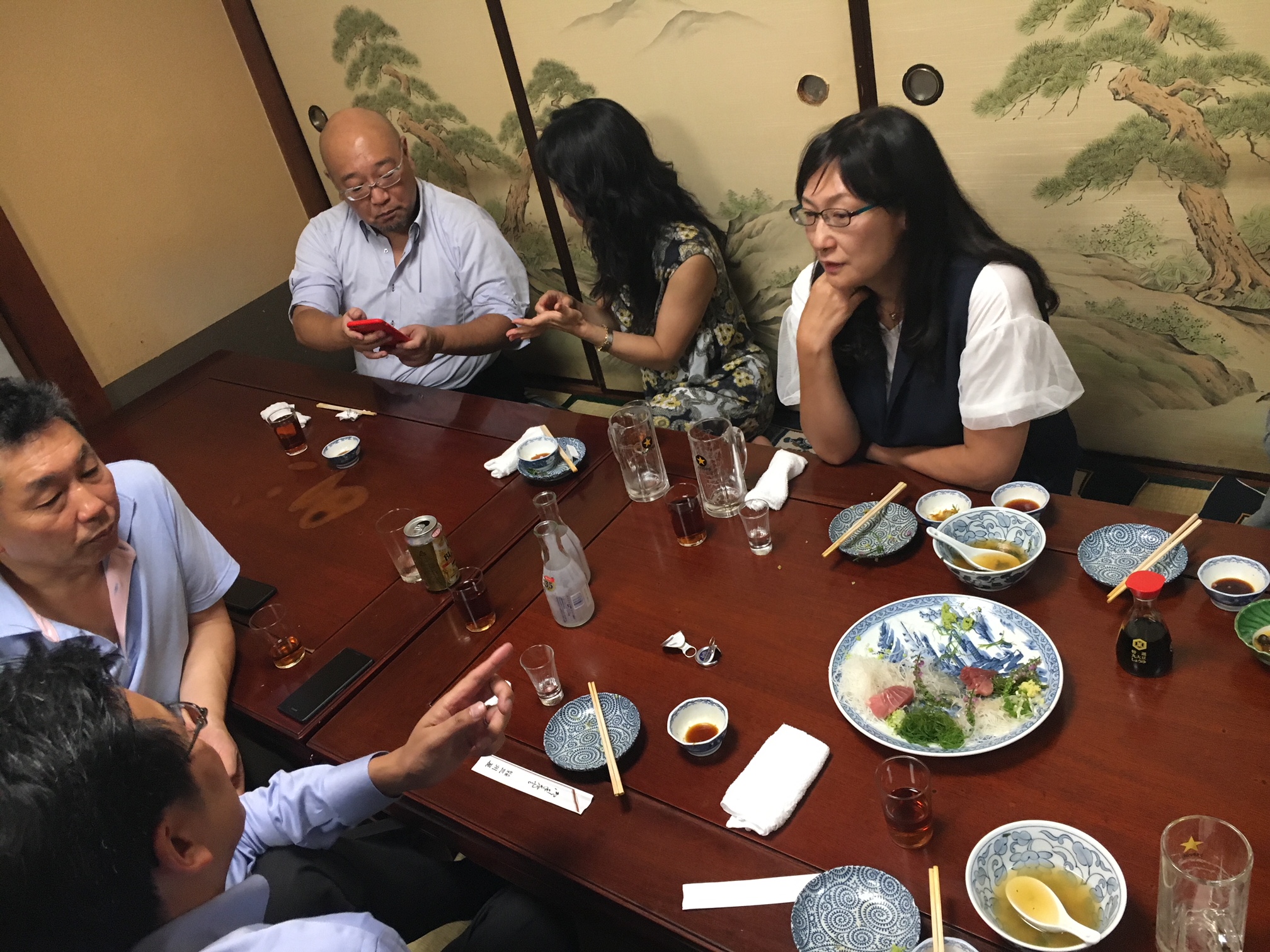 温かいトークの後は、美味しいご飯のお待ちかね。三州屋の「鳥豆腐」はあっさりとしたスープの中に鶏肉と豆腐がたくさん入っていて、特性ポン酢につけても最高。初めて食べたのになんだか懐かしい感じもして、鳥豆腐はまさにこのお店の雰囲気が作り出す味だと思った。それから、お刺身の盛り合わせは驚くほど肉厚。手軽な値段でこの美味しさが、このお店の人気の理由。 たった1時間ほどの雑談タイムだったのにも関わらず、慣れない銀座にいるはずなのに、まるで親戚のお家に来ているみたいな居心地の良さ。初めて出会った人ばかりなのに、まるでずっと前から知っていたかのような温かさ。私はいつのまにか進路相談まで乗ってもらっていた。初めて出会った人たちとこんなにも話ができるなんて、お店に入ったばかりの時は考えもしなかったけれど、今考えると、お店の引き戸に手をかけた瞬間から既にこの物語は始まっていたんだなって。