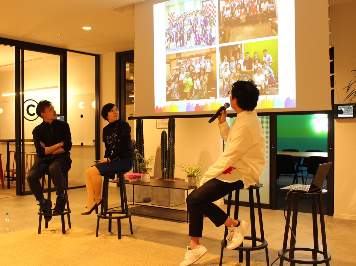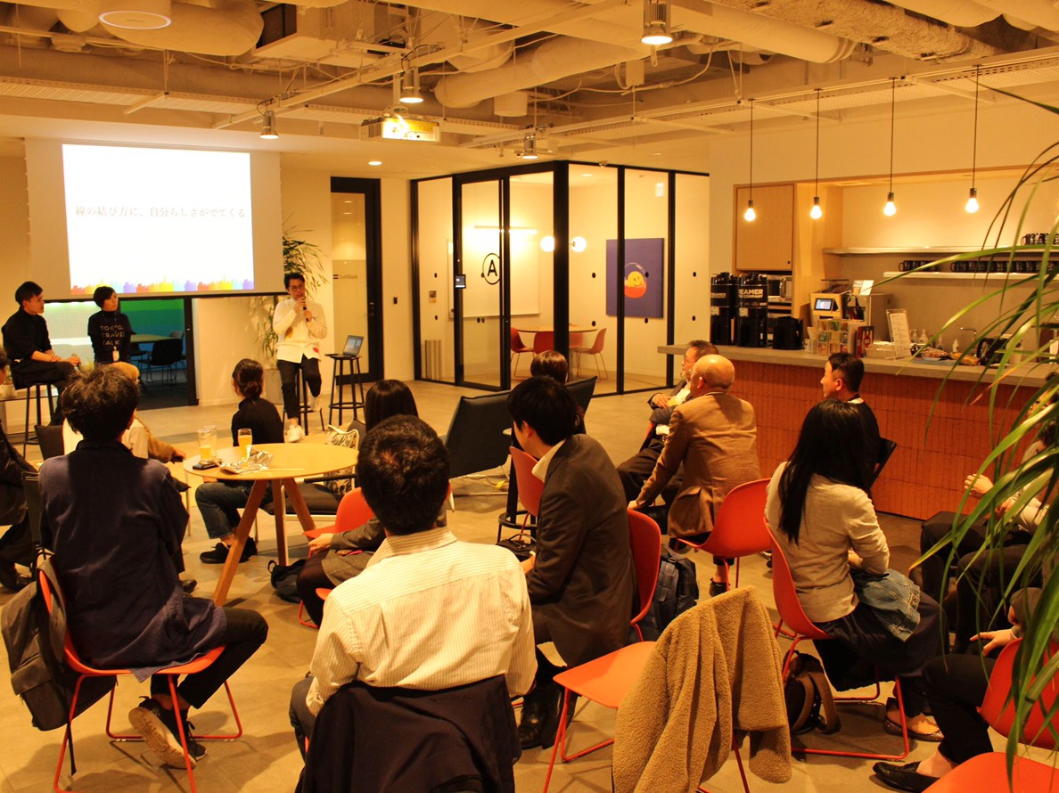そう、今回の旅するトーク会場は、利用者に合わせてオフィス環境を提供してくれるサービス「wework」が7月にオープンした「wework日比谷パークフロント」の一角。だから今日の会場には、ゲスト以外にもwework会員の人が思い思いにオフィスを利用していた。ビールを飲んだり、ふかふかの椅子でデスクワークをしたり。だからこんなにカフェのような雰囲気が漂っていたんだ。 そして今回のホストは、加藤加那子さん。加藤さん自身も前回の旅するトークではゲストとして参加し、「自分も、身の回りにいる素敵な人の物語を発信したい」という思いを持ったことが今回の開催につながった。そしてそんな彼女が選んだ人は、加藤さん行きつけのお店、「GLITCH COFFEE&ROASTERS」のバリスタ、小島朋則さんだ。