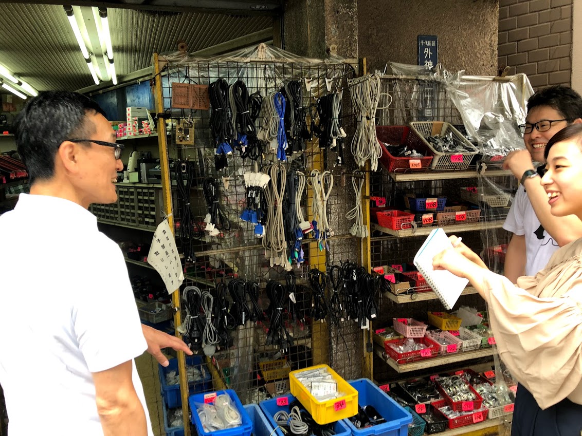 現在は、松崎さんの把握している限りで、秋葉原には2店舗しかないといいます。 「小さな部品をあつめて自分で作るところに男のロマンがある」と話す松崎さんは、一生懸命ジャンク定めをしていました。私も松崎さんに習ってお店に並んでいる部品を見てみたのですが、意外にも、小さくて細かい部品を見ているのは楽しいことに気付きました。これは何の部品なんだろう。この部品は何の機械が欲しがっているのだろう。そんなことを考えながら部品を楽しく見ることが出来るなんて思いませんでした。 お店とお店の間にも、松崎さんの話は止まりません。電気機器どころか、街で出会うメイドさんや漫画の話もたっぷりと話してくれる松崎さん。ここまで来ると家電蒐集家という肩書では小さすぎると感じます。