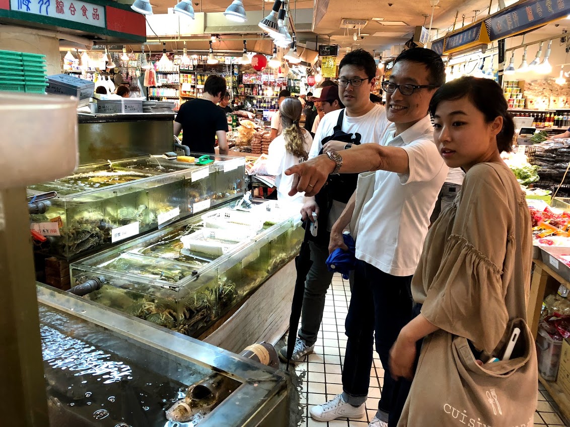 最近はネットによる出品が多くなっているため、なかなかこうした中古を取り扱うお店は厳しいと話す松崎さん。しかし実際に目でモノを見る、ということは、どのようなデザインで、どこがユニークなのかを見極めてから買うことができるので、実はとても重要な事だったりします。そんな実際に見てから買うということがおろそかになっている時代だからこそ、松崎さんのトレジャーハンティングの面白さは際立つのかもしれません。 上野といえば、アメ横。松崎さんは、アメ横商店街でも物知りぶりを発揮されます。この頃になると我慢していた台風が姿を現したので、雨風を逃げるようにアメ横の地下街へ。そこはさならが東南アジアを旅した気分になれる場所。主催者が臨機応変に行先を変えられるのも普通のツアーにはない面白さです。行った先は、上野どころか日本とすら思えない雰囲気。お店に並べられた見たことのない食べ物の数々、そしてお店の人も日本流の接客ではなく異国感あふれる応対だったのが素敵でした。