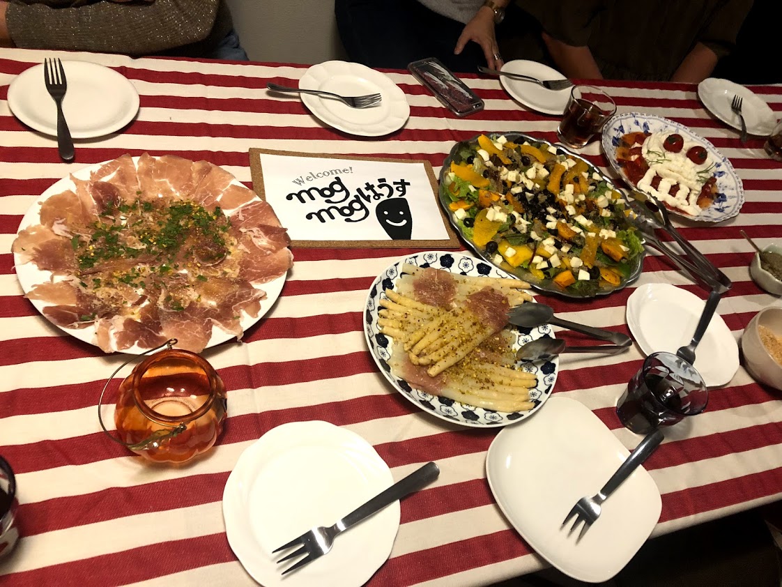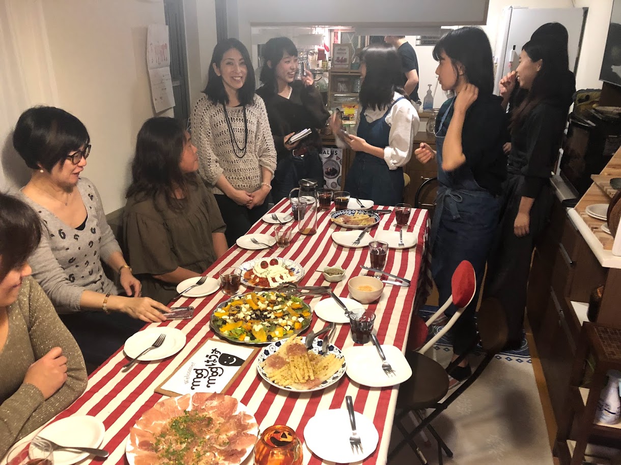 既に多くの人が和気あいあいと料理をテーブルに運んでいて、準備は整いつつあるようだ。 「こんばんは、ようこそ。さあ、あがって。」 温かい雰囲気と良い匂いが私を歓迎してくれている。直感でそう感じた。 今回旅を案内してくれるのは、食をコンセプトにしたシェアハウス「mog mogはうす」を経営している丸山寛子さん。でもどこに丸山さんがいるのかわからないほどキッチンの奥にもリビングにも人がいっぱいで、みんな既に打ち解けている様子。こんな素敵なコミュニティに果たして入り込めるのか、という不安もちょっぴりうまれたくらい。 そして今回の旅するトーク、大学生である私にとっていつもと少し違うことが1つ。それは同じ学年の女の子が参加していたことだ。今まではいつも私が1番年下だったから、同学年の子がいると聞いて、勝手に緊張してしまう。新学期の教室のようなざわざわとした気持ちに似たような、あの感じ。 テーブルに並べられた料理を前に、旅するトークがスタートする。まずは丸山さんのストーリーから。