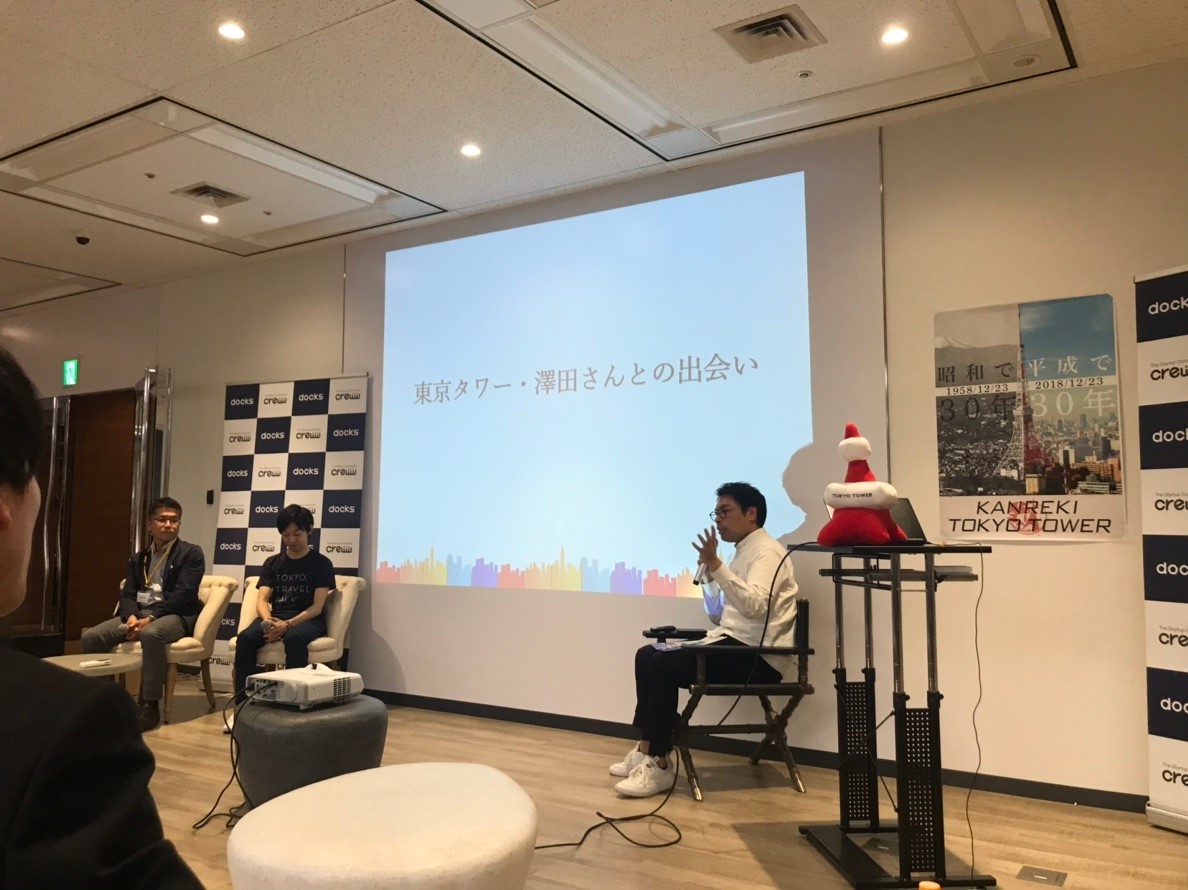 そんな小泉さんが今回のゲストスピーカーに選んだのは、「東京タワーの澤田健さん」。「東京タワーの」が付いている自己紹介、かっこいいなあ。東京のシンボルを支える人って感じがする。 そして驚いたのが、てっきり東京タワーって東京都の持ち物だと思っていたのが、日本電波塔㈱さんという企業が所有・運営するタワーだったということだ。今年で60周年という、人間でいう「還暦」を迎える東京のシンボルは「昭和の建築物」と思われがちだが、実は昭和の30年間と平成の30年間を見守る、ちょうど半々で時代をまたぐ建築物なのだ。