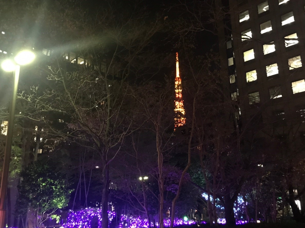 あれ、わたしまだ東京タワー見てない。 話を聞いた今日だからこそ、今日、東京タワーをみたい。そう思ってきょろきょろしたけれど、やっぱり見当たらない。しかたなく携帯を取り出し、方向を調べようと地図を開く。 ふとオレンジ色のぼんやりとした灯りが木の陰から見えたのに気が付いて、慌てて前を向く。東京のシンボルのはずなのに、どこか謙虚で遠慮がちにちょこんと顔をのぞかせていたのは東京タワーだった。行きは全く気付かなかったのに、こんなにはっきり、ビルとビルの間、木々の間から顔をのぞかせて、私を照らしてくれている。
