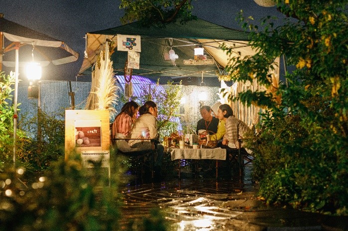 開催にあたってはアウトドア用品メーカー「COLEMAN」の協賛で、最新のキャンプグッズと共に多数のランタンの灯がともされ、表参道の真ん中に非日常的なキャンプ空間が出現。入居店舗である「bills 表参道」 からの特別なディナーの提供や「スターバックス コーヒー 東急プラザ表参道原宿店」からも「スターバック ス オリガミ®」を使用したワークショップが開催され、施設内外の協力企業とのコラボレーション体制を構築しました。