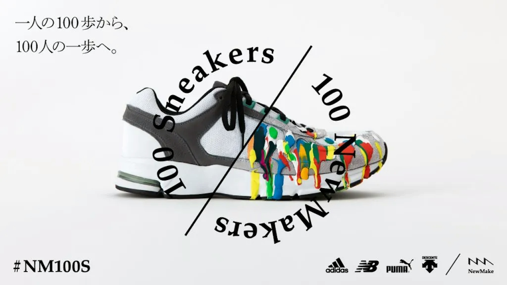 NewMakeの「100Sneakers100NewMakers」企画、廃棄予定のスニーカーを100人のクリエイターがアップサイクルし、渋谷区内で展示します