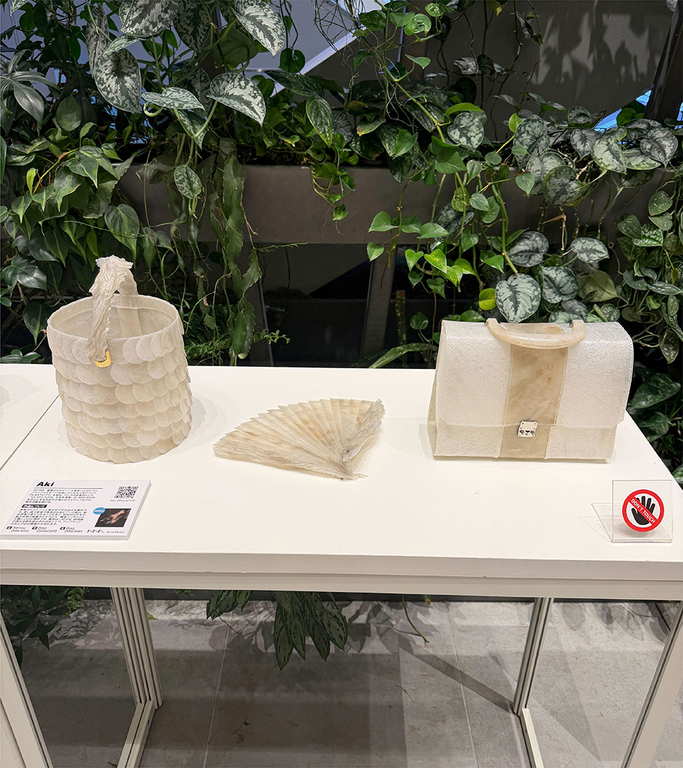 ●Aki プロフィール:2019年、廃棄されたビニール傘をバッグにアップサイクルする「10年後になくなるべきブランド PLASTICITY」を始め、バッグの主素材として「GLASS RAIN」生地を考案。GLASS RAINを中心とする作品や企業とのタイアップなどの制作活動を続ける。