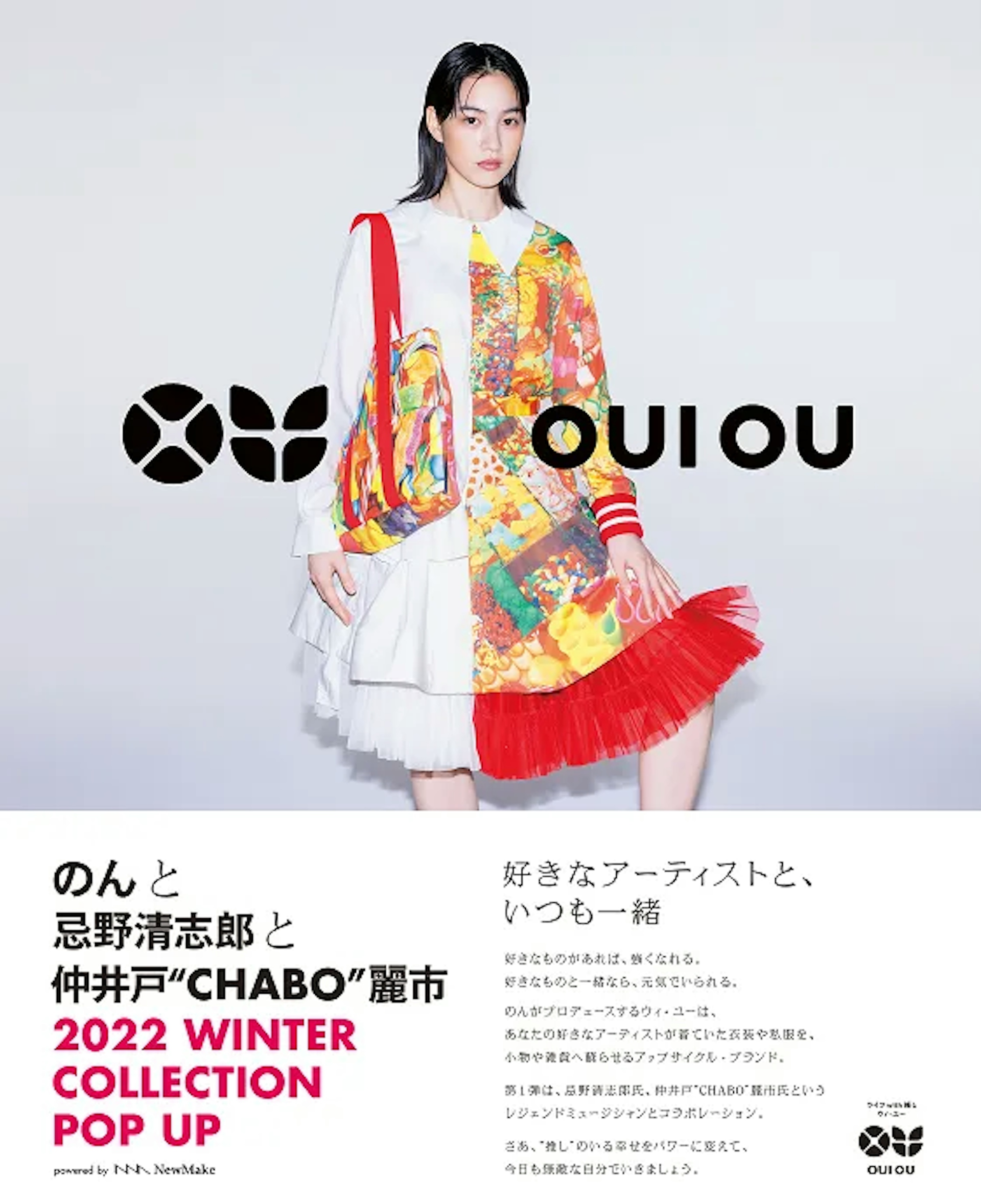 NewMakeにて、商品企画・開発・ビジュアル制作・ポップアップ制作などを担当させていただいた女優ののんさんのアップサイクルブランド『OUI OU』のポップアップショップが12/16-18の期間限定で、東急プラザ表参道・原宿4Fにて展開されます。